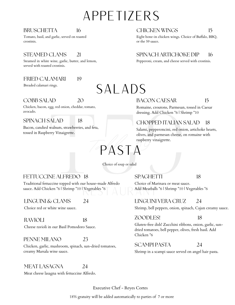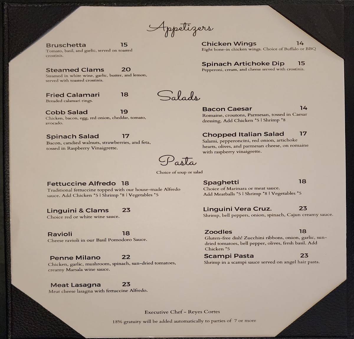 With a menu that breaks the mold of traditional American dining, you’ll find an exhilarating range of dishes that are as pleasing to the eyes as they are to the palate. Start your meal with the Bruschetta, an exquisite offering of fresh tomatoes, basil, and garlic served on warm toasted crostinis for just $16. Or indulge in the Steamed Clams steeped in white wine, garlic, and lemon, a dish that perfectly showcases the high-caliber ingredients for $21. For those starting with a zest for the familiar, the crispy Fried Calamari is a must-try at $19, presenting tender rings that will leave you craving more.