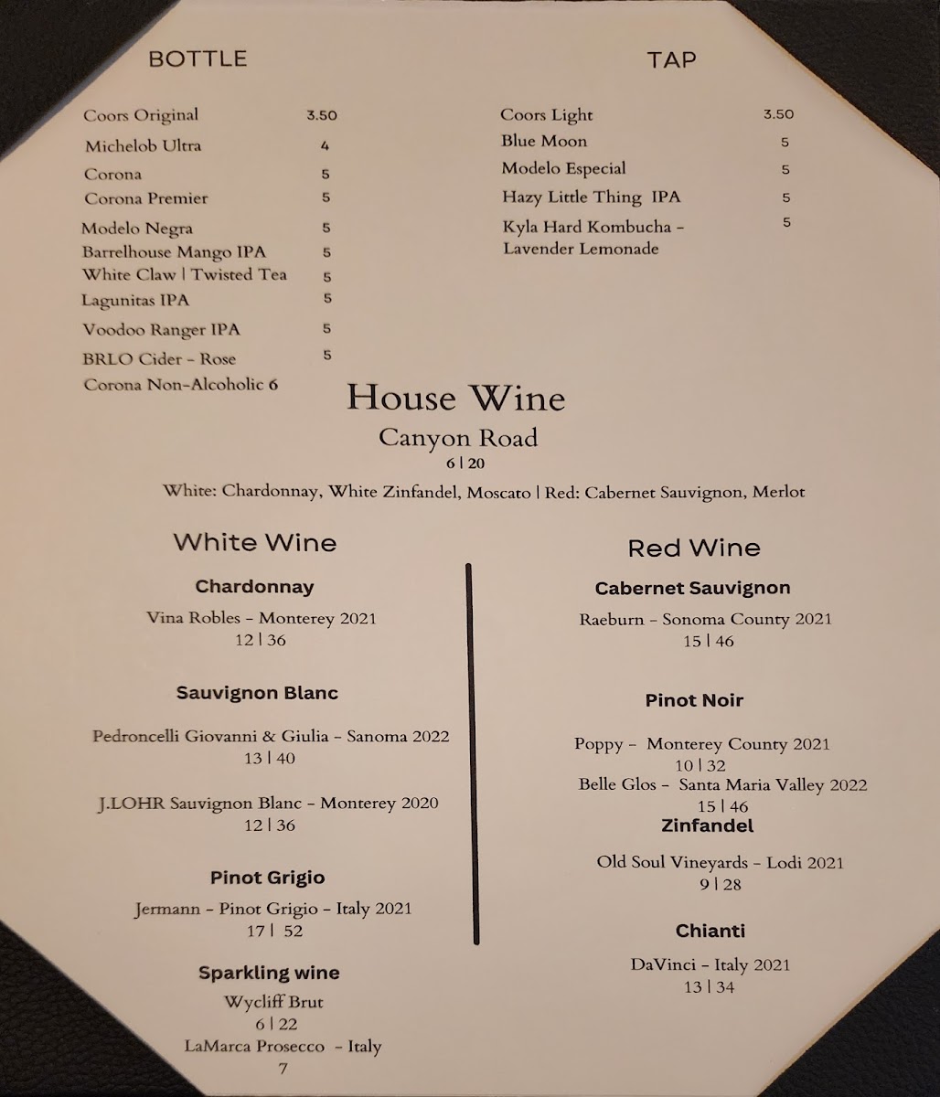 As for main courses, you simply can't go wrong with the BLTA Sandwich, an irresistible offering of bacon, lettuce, tomato, and creamy avocado mayo tucked between toasted sourdough for only $16. If you’re in the mood for something with a bit more flair, the Philly Cheesesteak, featuring tender strips of beef, mushrooms, onions, and gooey Swiss cheese, is priced at $18 and is sure to satisfy your savory cravings. It’s paired nicely with golden fries, completing a comforting meal that harkens back to home-cooked favorites.